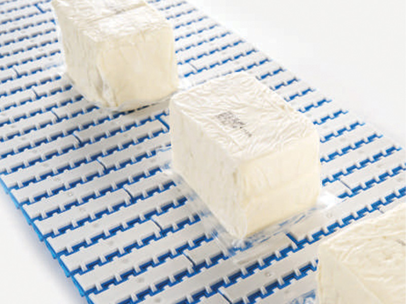 Designed for straight and curved conveying, this belt is ideal for space-constrained packaging lines and supports both packaged and unpackaged product transfer.
