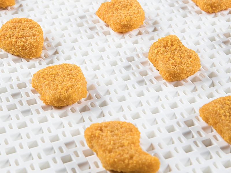 This belt balances cleanability with airflow and drainage, making it well suited for wet poultry environments where sanitation and moisture management are priorities.
